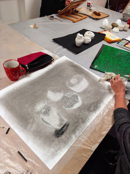 - Techniques du fusain, encres, crayon graphite, pastels secs.