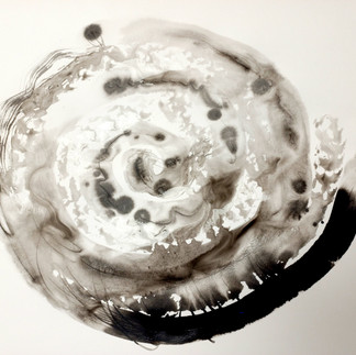 Nous avons travaillé le geste, l'écriture graphique, la magie de la diffusion de l'encre sur le papier mouillé.